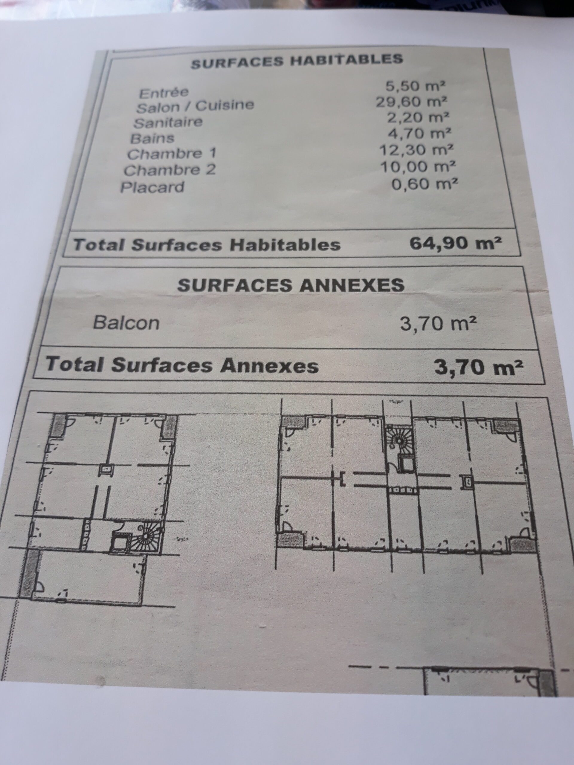 Loyer mensuel 1015 € (dont 150 € de provisions sur charges comprenant: eau, chauffage, charges de copro, câble)