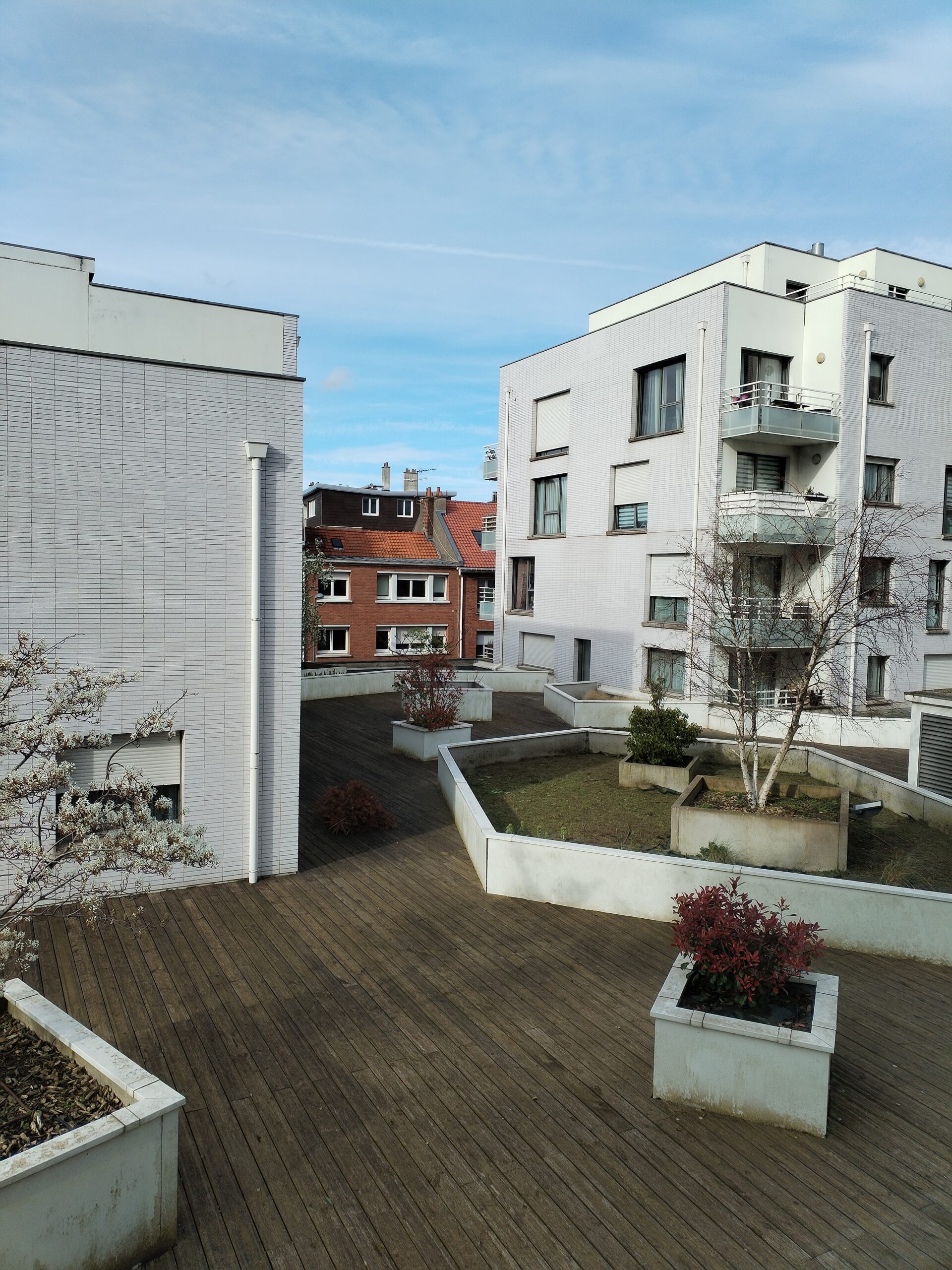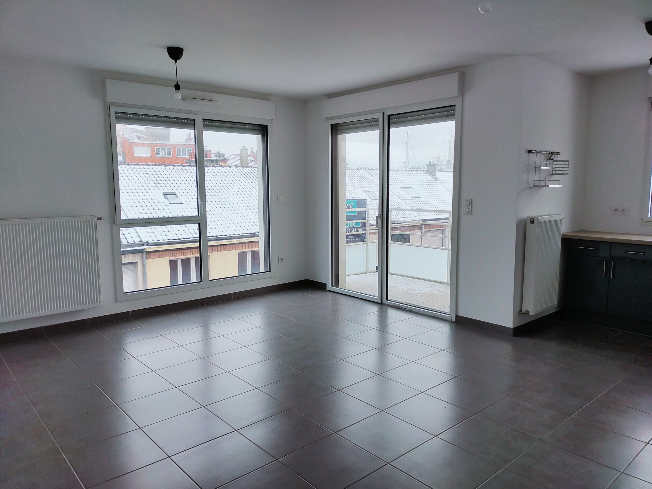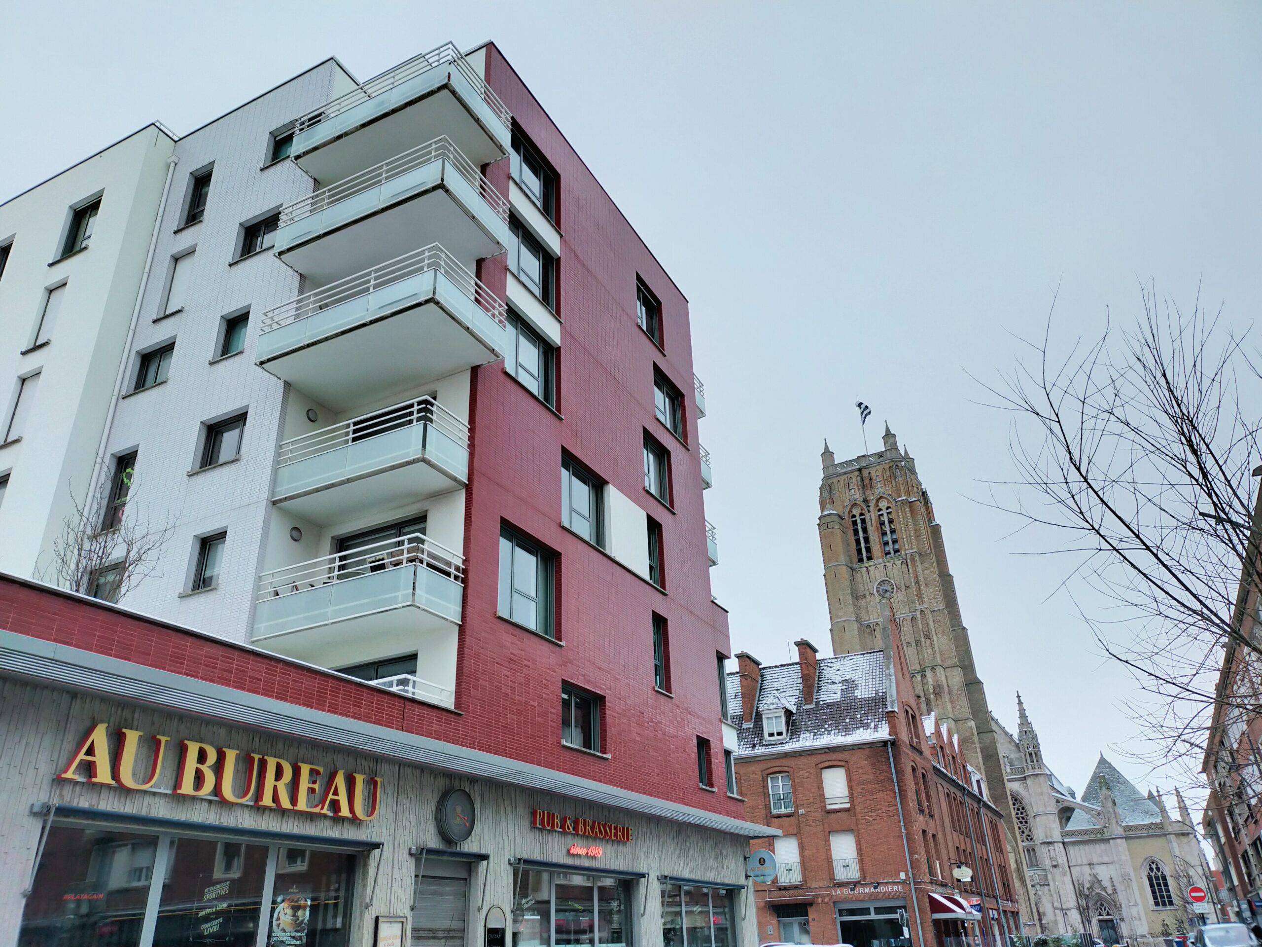 Appartement de standing en centre ville de Dunkerque résidence Le Beffroi, situé au 2ème étage dans résidence avec ascenseur comprenant : entrée, vaste séjour avec cuisine américaine aménagée et équipée, salle de bains, wc, 2 chambres