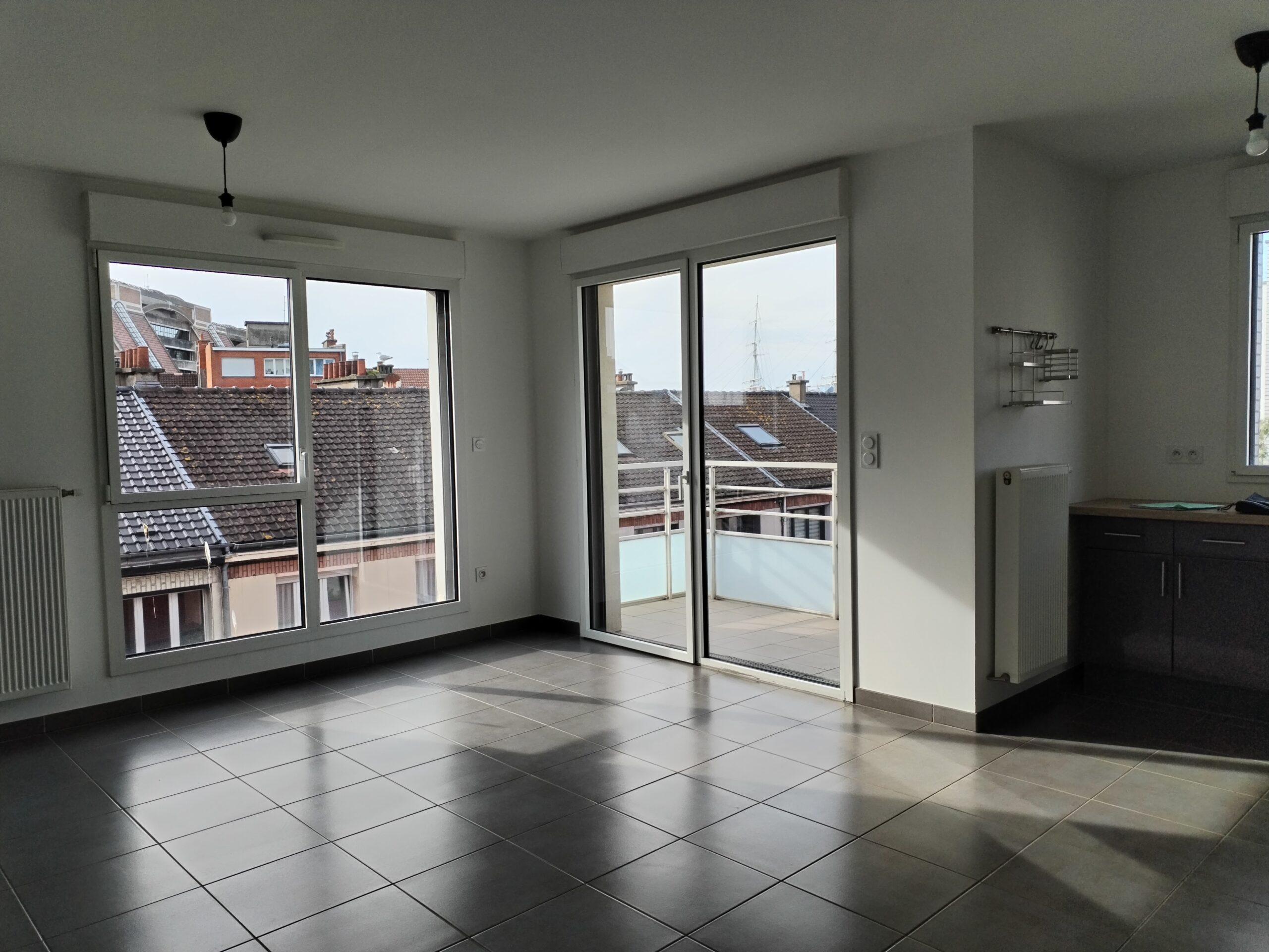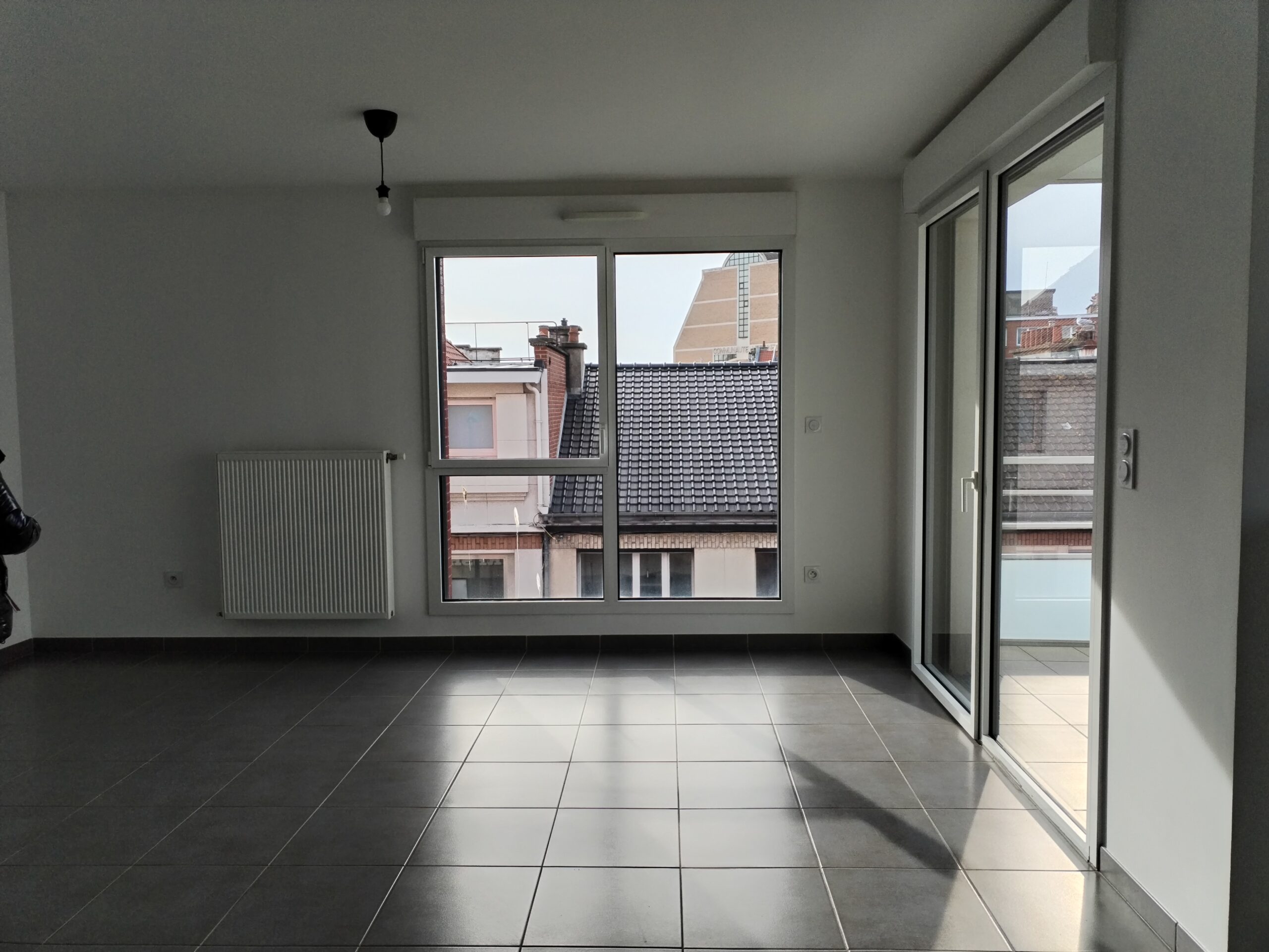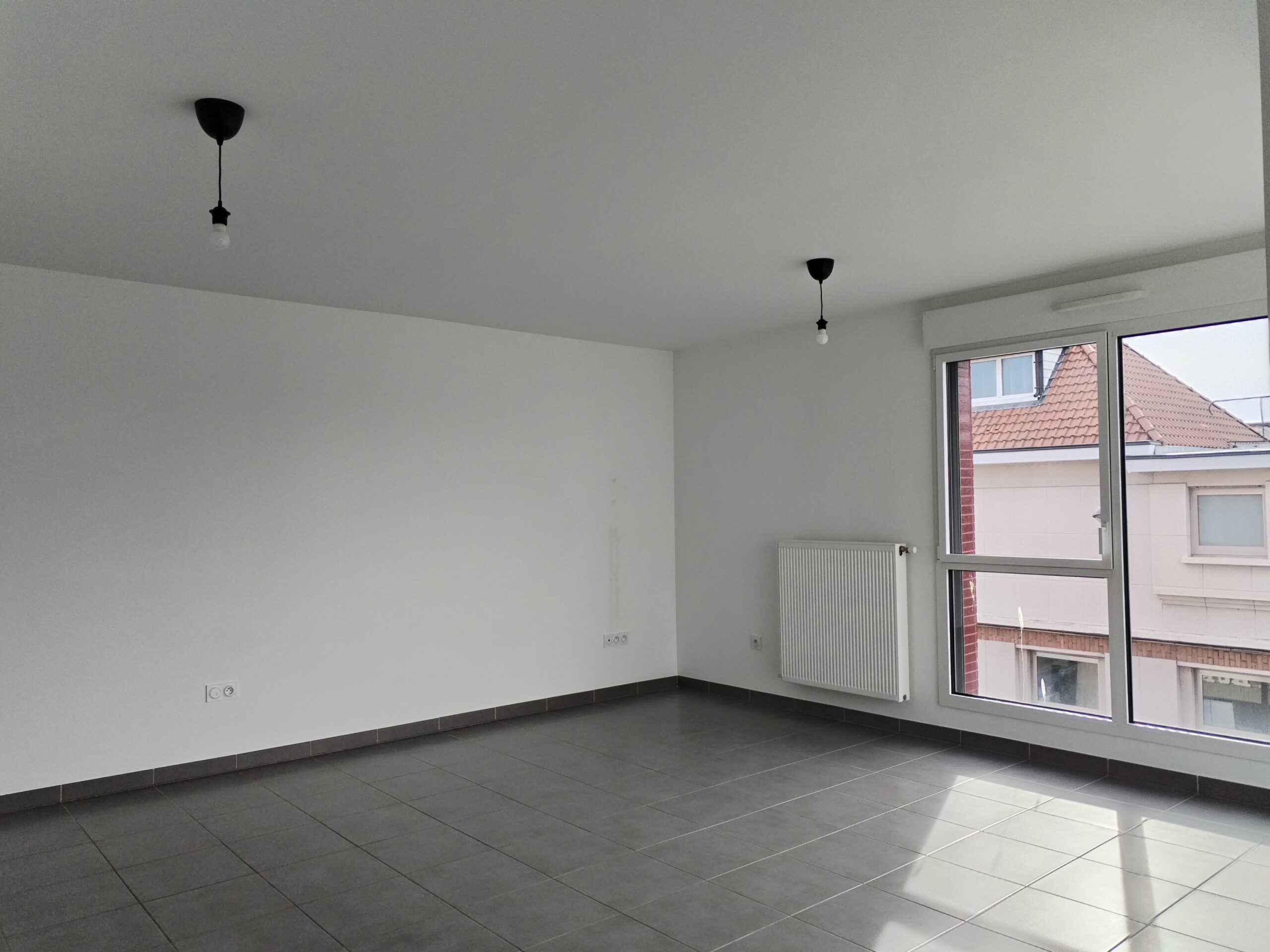 Appartement de standing en centre ville de Dunkerque résidence Le Beffroi, situé au 2ème étage dans résidence avec ascenseur comprenant : entrée, vaste séjour avec cuisine américaine aménagée et équipée, salle de bains, wc, 2 chambres